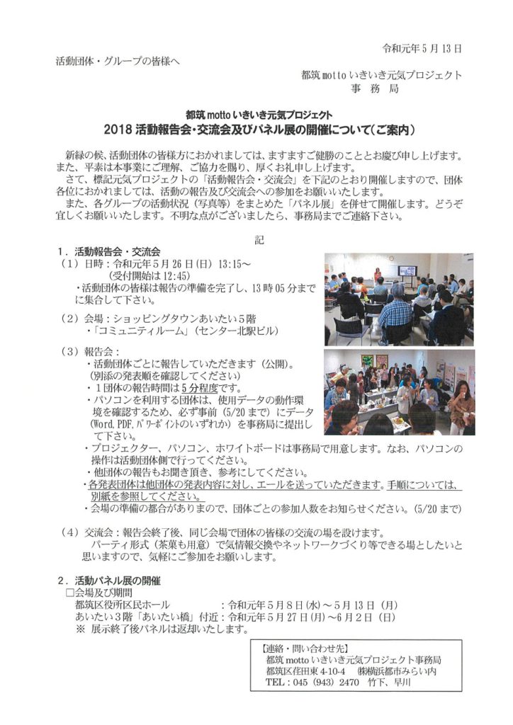 「2018都筑mottoいきいき元気プロジェクト」 活動報告会・交流会・パネル展の開催について